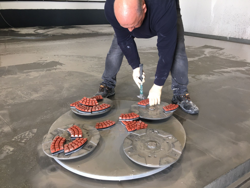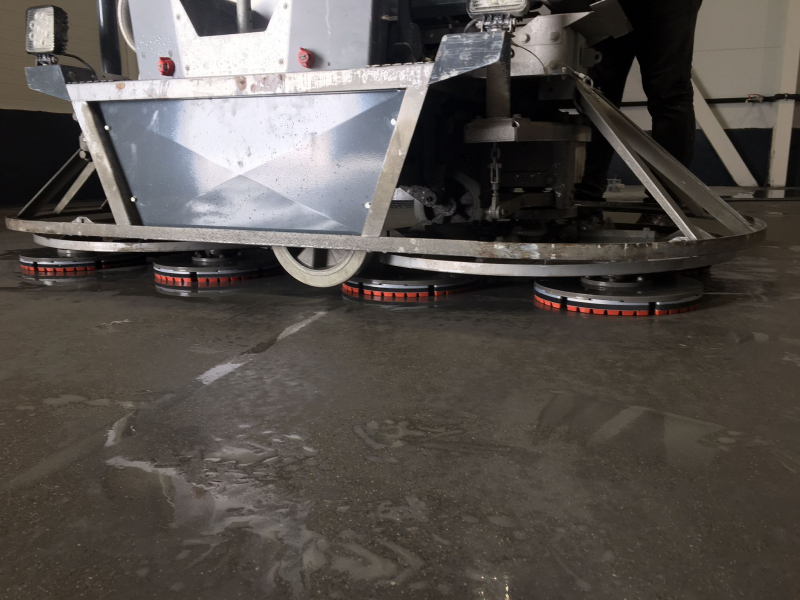 Dwa talerze 900 mm zawierające po 4 głowice rotacyjne zapewniaja doskonałe efekty szlifowania i polerowania na powierzchniach betonowych.