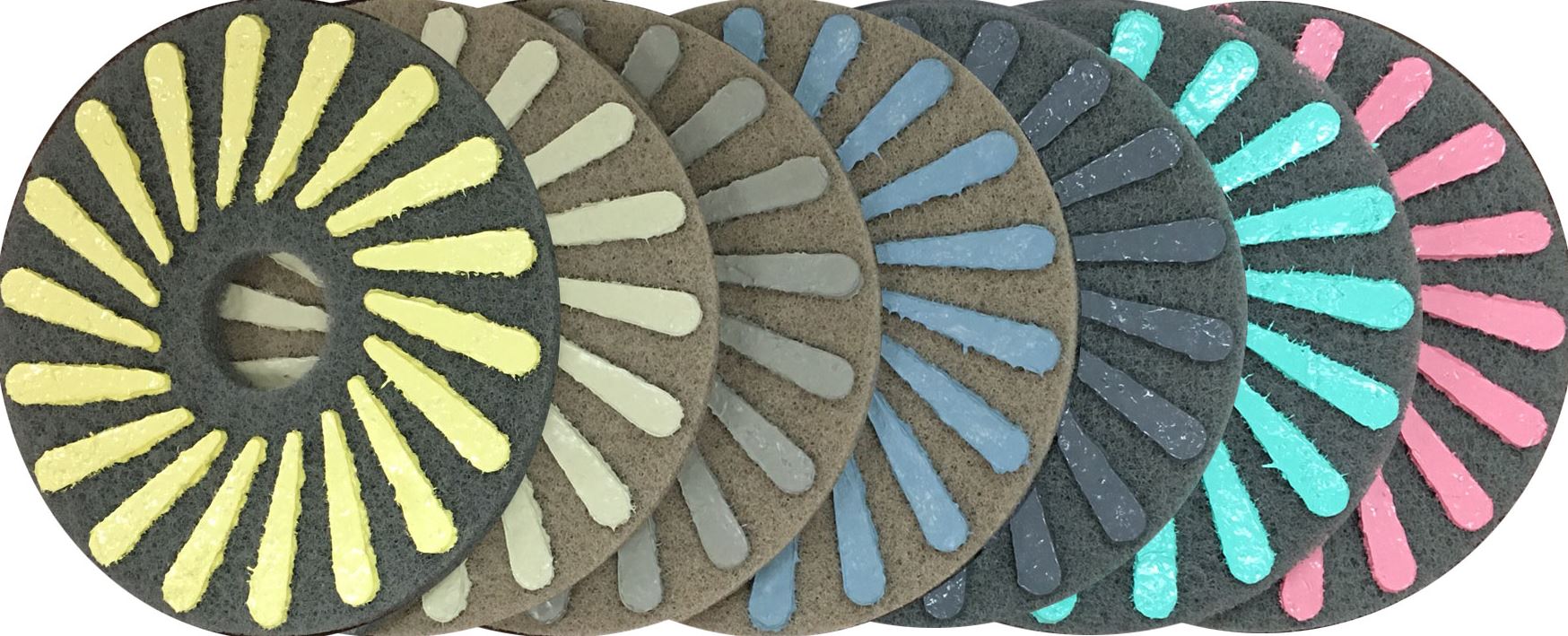 Narzędzie diamentowe na spoiwie polimerowym służące do końćowego polerowania oraz czyszczenia posadzek betonowych, lastryko oraz marmuru. Segmenty diamentowe osadzone są na twardym padzie który dociska narzędzie do posadzki.