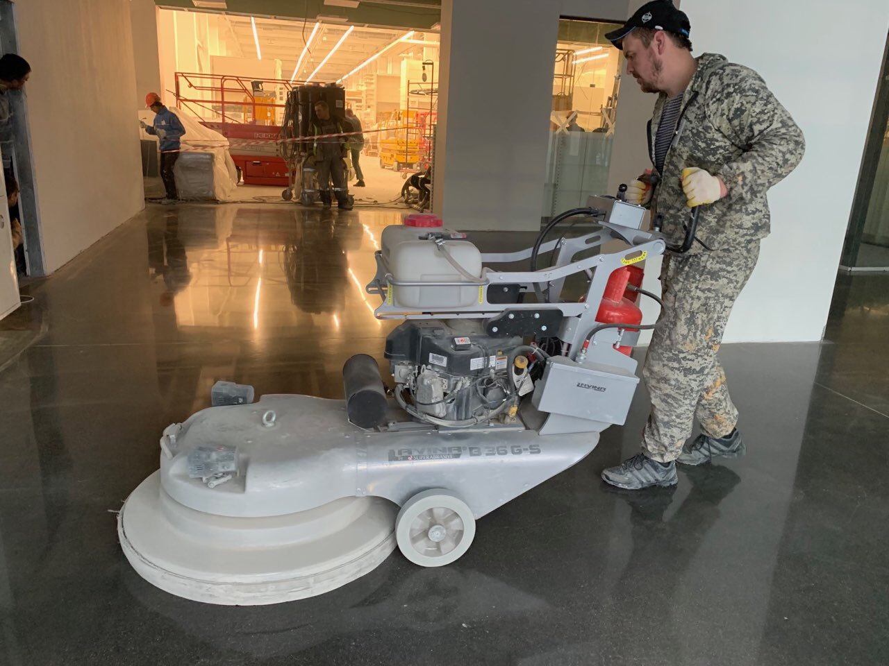 Most of all, it is an inexpensive and relatively simple execution of a new floor. Then, the lowest costs of maintenance and easy regeneration of the already completed floor. This also means a decorative appearance and no additional top coat. Grinding and polishing concrete floors is a step forward in the technology of floor finishing. Polished concrete can be delivered in three different technologies. Lavina Floor – by using heavy-duty rotary machines.