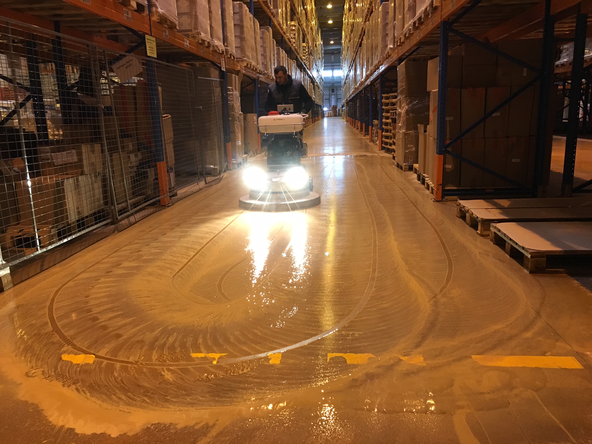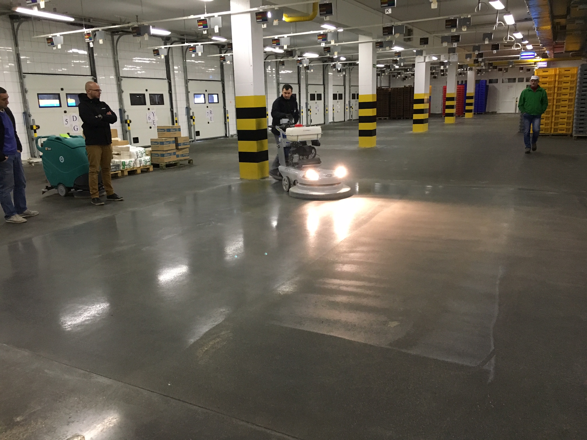 The concrete floor on multi-surface facilities should be cleaned and renewed. The frequency of cleaning and regeneration of the floor depends on how well the concrete floor is made and how it is used. The Lavina Floor ECO technology allows you to quickly and inexpensively renew the appearance and properties of the concrete floor. It is the most effective solution for warehouses and production halls. The regeneration of terrazzo tiles in large chain stores is becoming more and more popular in Poland. Grinding and polishing of the floor using the Lavina Floor ECO technology must be done wet with microdiament mesh. During work, it is necessary to use chemicals and impregnations on the concrete surface. During operation, the resulting concrete output is to be collected by a professional washing machine. The main grinding and polishing machine is Lavina B36G-S large planetary grinding machine. Lavina Floor ECO technology has been known in Poland since 2015. Currently, many of our partners offer the use of this technology in large-scale facilities.